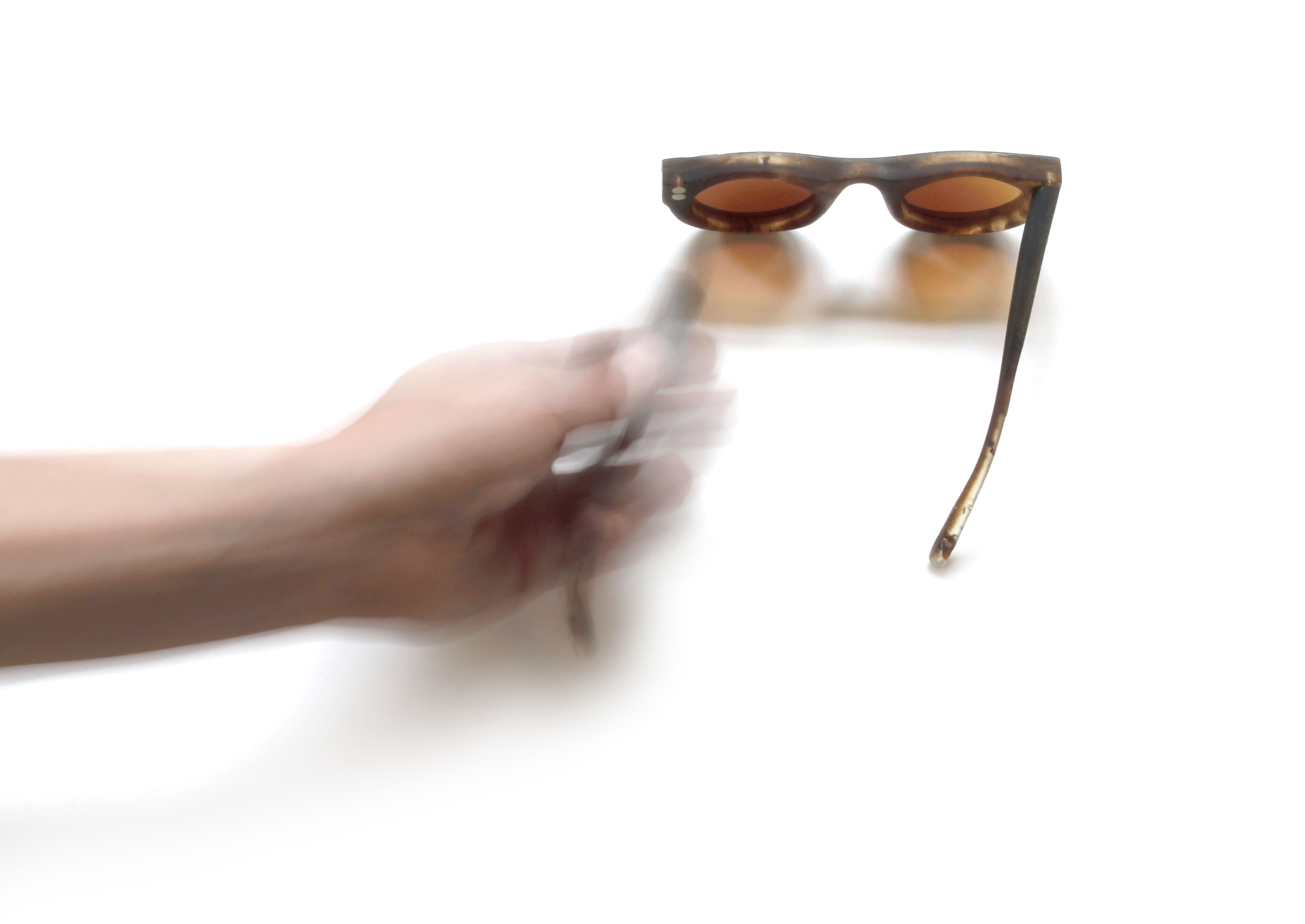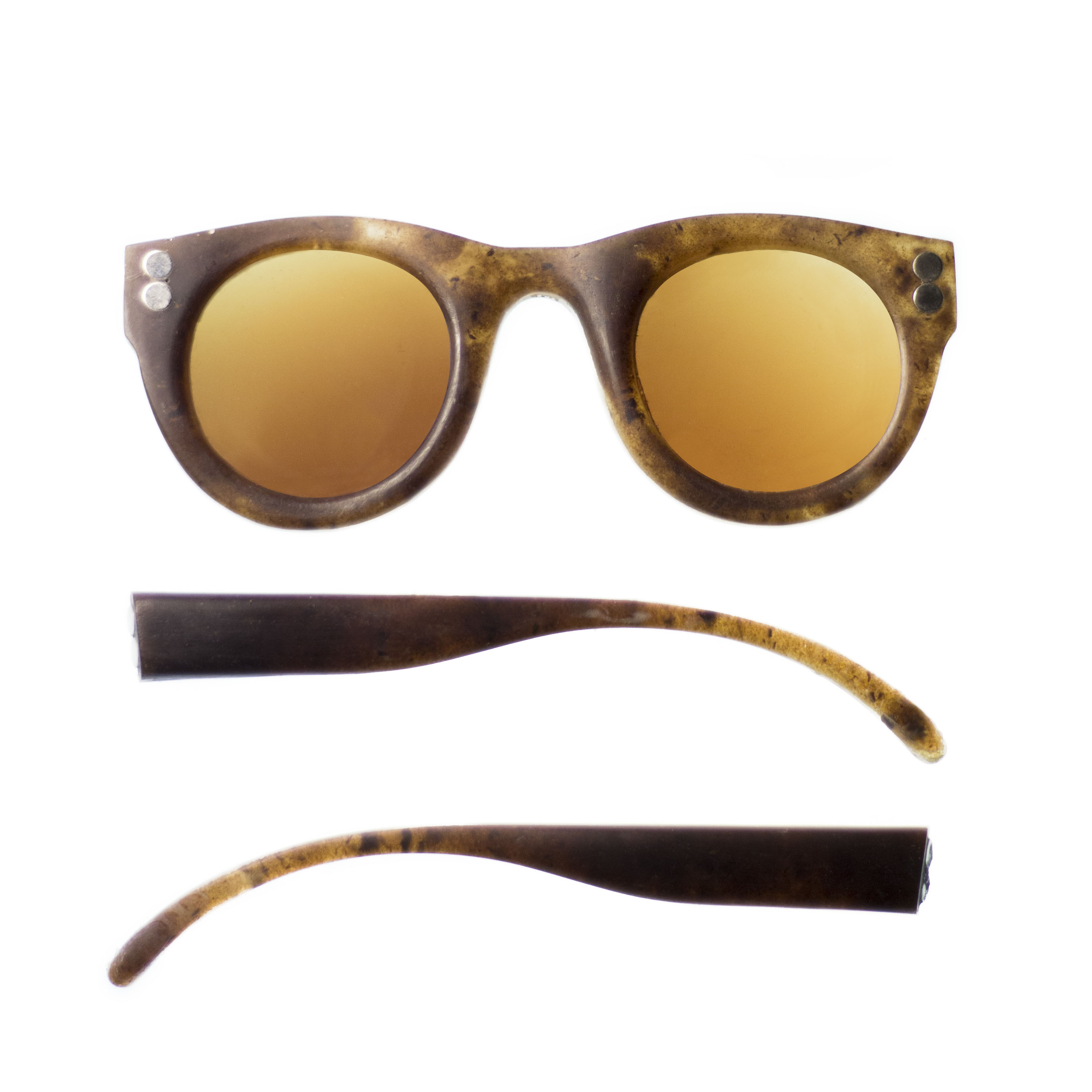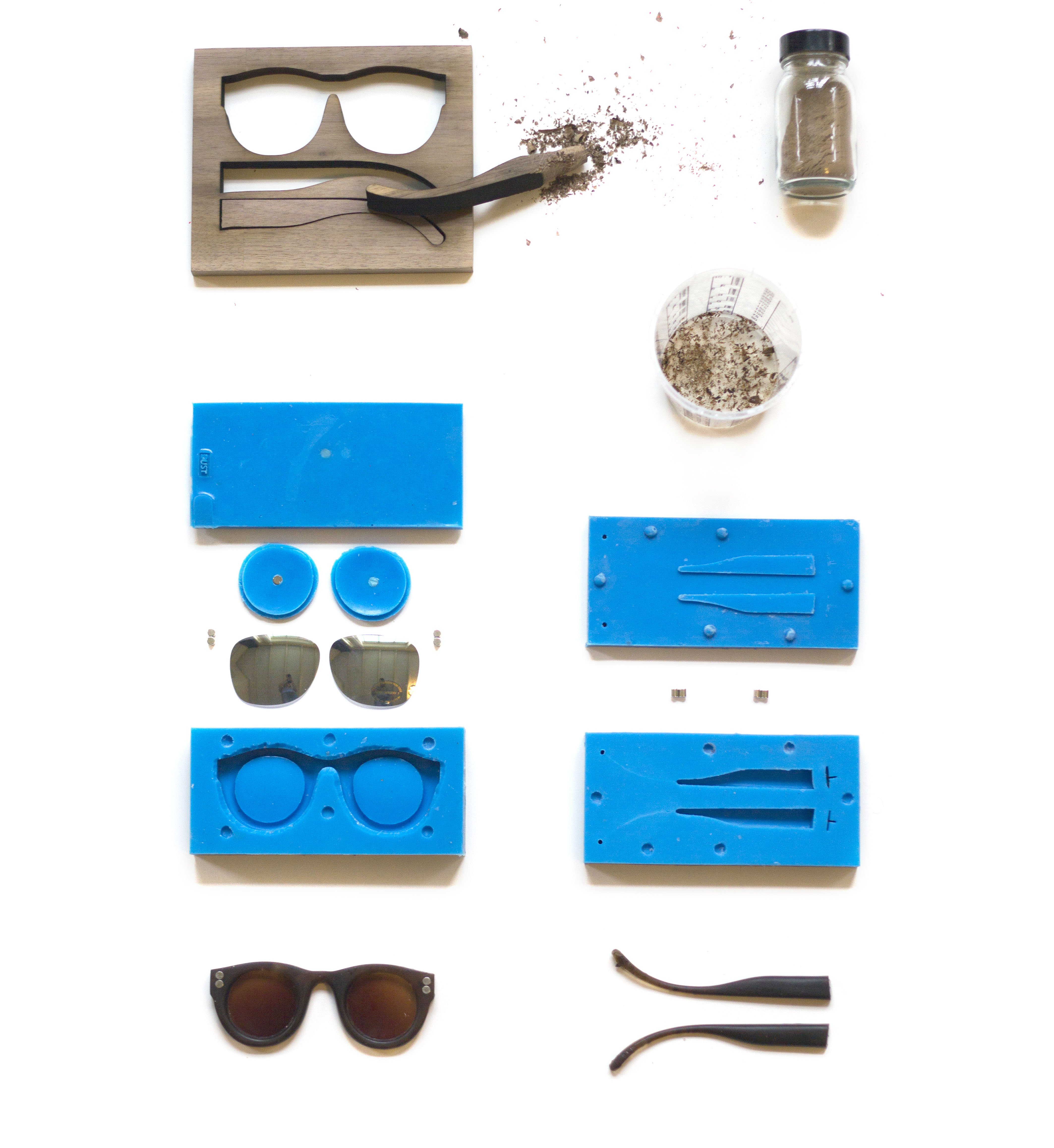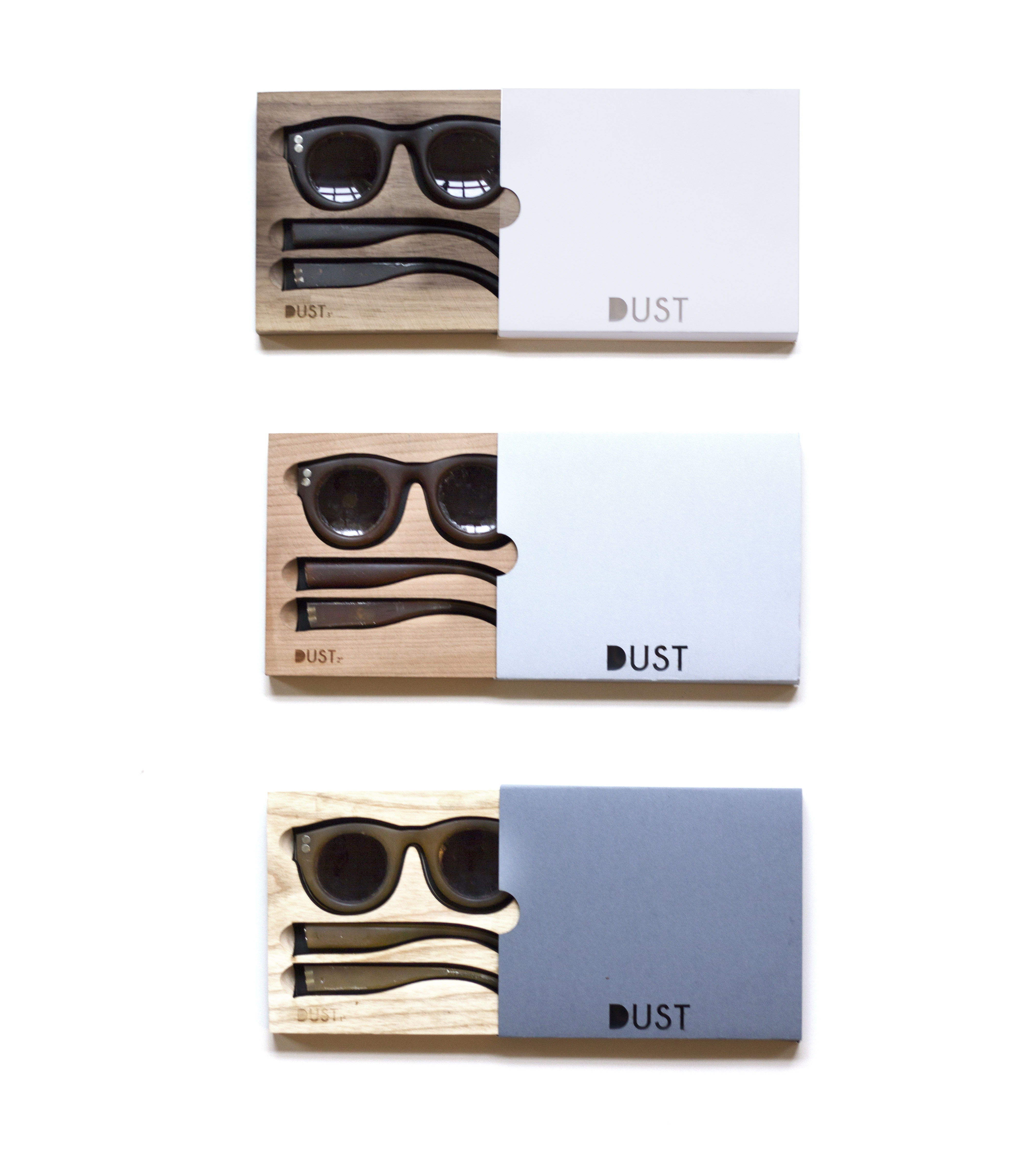 DUST The packaging as a starting point Based on a home production series at the request of the Bijenkorf Eindhoven, Dust is a limited edition sunglasses. Every Dust sunglasses is unique, made by hand. As a limited edition, every essence of wood will be represented by 3 glasses, all numbered. Dust comes from an experimentation with wood leftovers as an additive to plastic. As much as a composite enhancing its properties than an aesthetic additive and natural pigment. The fabrication process of this product is a visual allegory of the contemporary manufacturing process: starting from the raw elements of nature to create a functional and specific tool. This tool is created by a combination of various elements to be used in a natural environment and improve our condition with it. Those glasses start from a raw piece of wood, which is cut on the shape of the glasses, sanded and reduced to the smallest. The glasses are then re-shaped from the dust as the main binder connecting all the elements to finally be put back where it comes from: into the wood. material: Specific essence of wood / Polypropylene lenses (filter category 3) / Magnets / Epoxy crystal clear