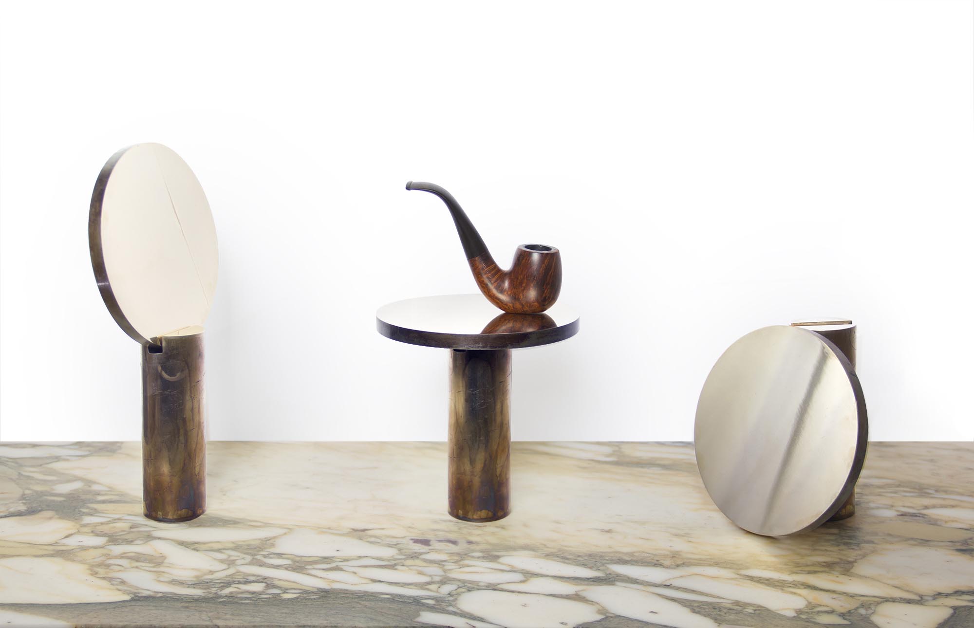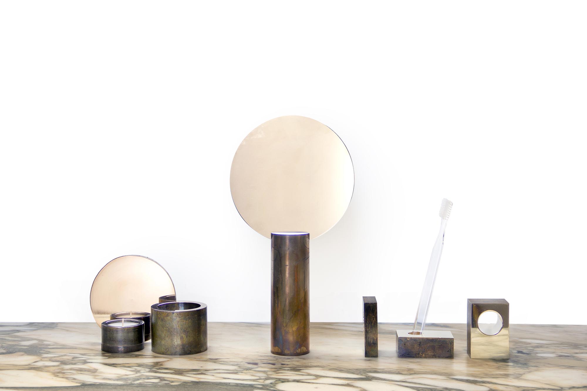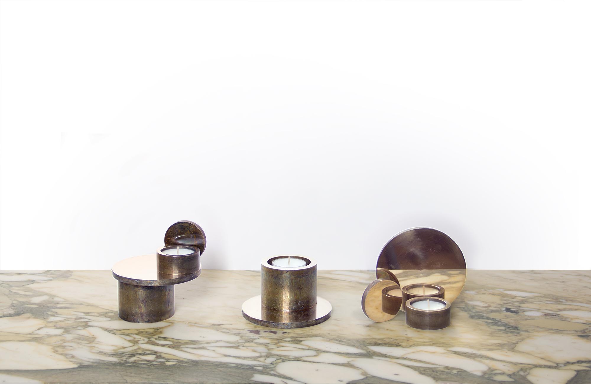 Timelessness through oxydation Oxidation is often interpreted as an aging of the product, the touch of time on the material. As oxidation, style is another mark of time on a product. Through those two aspects, Oxydum play on the notions of time and style, blurring our understanding our the era of the object by a use of timeless geometrics shapes and a controlled use of the oxidation process. material: bronze